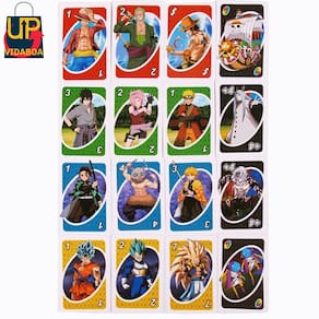 O Jogo de Cartas UNO com 4 Animes juntos é uma edição especial que combina elementos de quatro universos anime populares em um único jogo de cartas emocionante. Esta versão temática é perfeita para os fãs de anime que desejam experimentar uma mistura única de personagens e estilos de diferentes séries em um jogo clássico e divertido como UNO.