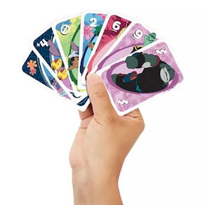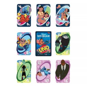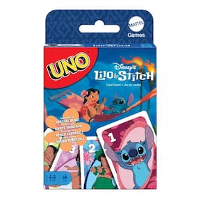 Os fãs de Lilo & Stitch, da Disney, vão adorar jogar esse jogo de cartas UNO temático. Com um baralho que apresenta gráficos inspirados nos personagens e cenas favoritos, os jogadores tentam combinar cores e números - há uma regra especial "Ohana" que faz com que todos os jogadores tenham quatro cartas na mão! E quando estiver faltando uma última carta, melhor não se esquecer de gritar "UNO!"