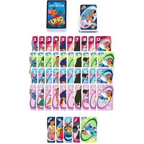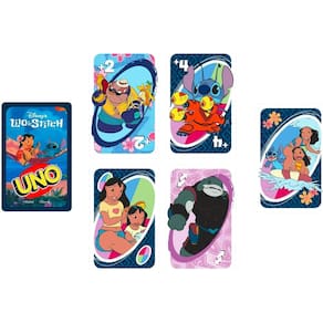 **Jogo de Cartas Uno Disney Lilo & Stitch**Os fãs de Lilo & Stitch, da Disney, vão adorar jogar esse jogo de cartas UNO temático. Com um baralho que apresenta gráficos inspirados nos personagens e cenas favoritos, os jogadores tentam combinar cores e números - há uma regra especial "Ohana" que faz com que todos os jogadores tenham quatro cartas na mão! E quando estiver faltando uma última carta, melhor não se esquecer de gritar "UNO!"Ideal para fãs de Lilo & Stitch e para os amantes de jogos de cartas a partir de 7 anos de idade.O jogo corresponde ao clássico em que os jogadores combinam cores e números para se livrar de todas as cartas. A regra especial "Ohana" permite que os jogadores com mais de 4 cartas na mão descartem até 4 e que os jogadores com menos de 4 cartas na mão comprem até 4.Projetado para 2 a 10 jogadores com 7 anos ou mais, o jogo de cartas colecionáveis inclui 112 cartas e instruções.