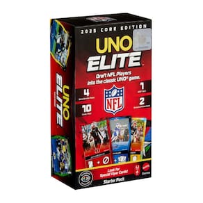 Experimente a emoção de um estádio com o jogo de cartas UNO Elite NFL 2025 Core Edition oficialmente licenciado! Comece a ação com 112 cartas especiais do pacote inicial e intensifique-a com 4 pacotes extras e 2 cartas promocionais. Cada pacote de reforço contém 10 cartas Elite Action, totalizando 40! Mantendo o estilo clássico do UNO, desfrute de novas ações como Skip and Reverse, com jogadores amados da NFL. Com mais de 2.000 cartas Elite Action disponíveis, melhore sua jogabilidade. Quando chegar à carta final, grite: “Hut, hut, UNO!”. Um presente indispensável para entusiastas de jogos de cartas e da NFL, adequado para maiores de 7 anos. As cores e as decorações podem variar.