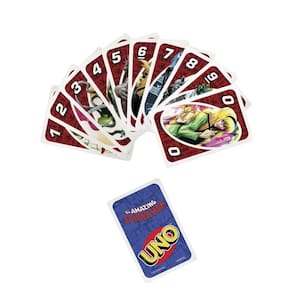Os fãs de O Espetacular Homem-Aranha vão adorar jogar este jogo de cartas UNO temático. Com um baralho apresentando gráficos inspirados nos personagens e cenas favoritos, os jogadores tentam combinar cores e números - há até uma regra especial de "Balanço de Teia" que pode pular vários jogadores! E quando estiver com apenas uma carta, não se esqueça de gritar "UNO!