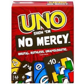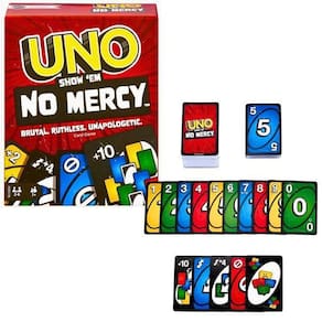 A partir de agora, a brincadeira ficará ainda mais divertida com o jogo de cartas UNO Show 'em No Mercy da Mattel com 169 peças (168 cartas e instruções), incluindo cartas extras e regras inovadoras. É indicado para crianças a partir de 7 anos e pode ser jogado por 2 a 10 jogadores. UNO Show 'em No Mercy é a versão mais implacável do clássico UNO! Com penalidades, regras inovadoras e a chance de eliminar todos os adversários, este jogo oferece uma experiência intensa. Ganhe livrando-se de todas as cartas ou derrotando os oponentes. Não se esqueça de gritar "UNO" ao ficar com uma carta.