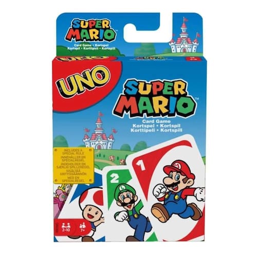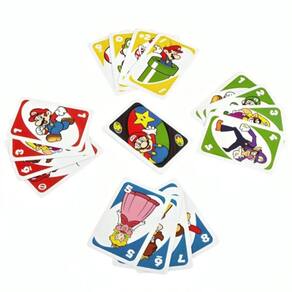 Junte-Se a Mario, Luigi e a Todos Os Seus Amigos Para Um Jogo Especial Uno! É o Uno Clássico Que Você Adora, Mas Esta Versão Também Inclui Uma Carta Especial Mario Super Star Que Torna Seu Personagem Invencível! Depois Que Outro Jogador Jogar Uma Carta Comprar 2 ou Um Curinga Comprar 4, Você Joga a Carta Super Star Para Devolver o Poder Ao Jogador e Fazer com Que Ele Compre Duas ou Quatro Cartas! Marque Pontos Sendo a Primeira Pessoa a Ficar sem Cartas Nas Mãos o Primeiro Jogador ou Equipe a Atingir 500 Pontos Ganha