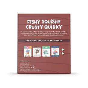 Unstable Games Fishy Squishy Crusty Quirky Base Game – Jogo de cartas de pesca competitivo para crianças, adolescentes, adultos – 2 a 6 jogadores, a partir de 7 anos - Pesque fora da competição: fique viciado no Fishy Squishy Crusty Quirky, um jogo de cartas estratégico rápido dos criadores de Here to Slay and Unstable Unicorns! - Um bom tempo: lance sua rede para pegar criaturas marinhas e trocá-las por Sand Dollars, enquanto enfrenta os perigos do mar. - Perfeito para maiores de 7 anos: jogar leva de 30 a 60 minutos. - Brinque com amigos e família: Fishy, Squishy, Crusty, Quirky é um jogo para 2-6 jogadores. - O que vem na caixa: 107 cartas, 12 fichas de areia e 1 livro de regras.
