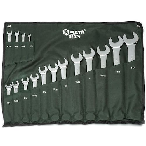 Jogo De Chave Combinada 1/4 A 1.1/4 Sata 16 Peças Ferramentas em aço cromo vanadio. - Composição do jogo: 1/4", 5/16", 3/8", 7/16", 1/2", 9/16", 5/8", 11/16", 3/4", 13/16, 7/8", 15/16", 1", 1.1/16", 1.1/8", 1.1/4" Código:st09074sj Imagem meramente ilustrativa. - Jogo de chaves combinadas- Fabricadas em aço cromo vanádio - Acabamento cromado - Ótima resistência - Conjunto com 16 peças Boca e Estrela : 1/4, 5/16, 3/8, 7/16, 1/2, 9/16, 5/8, 11/16, 3/4, 13/16, 7/8, 15/16, 1, 1.1/16, 1.1/8, 1.1/4 - Estojo em tecido, para fácil manuseio com marcação de medidas - Marca: Sata Tipo: CHAVE COMBINADA Aviso: Imagem Meramente Ilustrativa : Contra Defeitos de Fabricação Número da peça: ST09074SJ Tamanho: 1/4" a 1.1/4" Cor: Verde Material: Aço Cromo-Vanádio Cr-V
