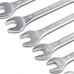 Jogo de Chave Fixas, também conhecida como chaves de boca, 6 a 22 mm com 8 peças é utilizada para afrouxar, apertar e regular porcas e parafusos, de feição quadrado ou sextavado. Possui bocas com menor espessura possibilitando acesso a lugares difíceis. Produzida em aço cromo vanádio com acabamentos niquelado. São ferramentas que não pode faltar na sua caixa de ferramentas. Indicada para ajustes, regulagens e apertos. Fabricada em aço cromo vanádio Acabamento niquelado Cabeças com menor espessura, possibilitando acesso a lugares restritos. Composto por chaves de: 6 x 7, 8 x 9, 10 x 11, 12 x 13, 14 x 15, 16 x 17, 18 x 19, 20 x 22mm : 6 meses 3 meses de legal por lei, contando a partir da data de emissão da de Venda e 3 meses de concedido pelo fabricante contra defeito de fabricação Marca: Mayle Crescent Ean: 7891645114077