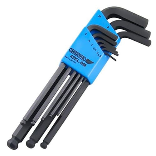 Jogo de Chave Hexagonal Allen Abaulada Longa de 1,5 à 10 MM com 9 Peças GEDORE Comppsição do Jogo: 012.899: 42 KL - 1,5 mm - Chave L hexagonal (allen) abaulada longa mm 012.902: 42 KL - 2 mm - Chave L hexagonal (allen) abaulada longa mm 012.903: 42 KL - 2,5 mm - Chave L hexagonal (allen) abaulada longa mm 012.904: 42 KL - 3 mm - Chave L hexagonal (allen) abaulada longa mm 012.905: 42 KL - 4 mm - Chave L hexagonal (allen) abaulada longa mm 012.906: 42 KL - 5 mm - Chave L hexagonal (allen) abaulada longa mm 012.907: 42 KL - 6 mm -Chave L hexagonal (allen) abaulada longa mm 012.908: 42 KL - 8 mm -Chave L hexagonal (allen) abaulada longa mm 012.909: 42 KL - 10 mm - Chave L hexagonal (allen) abaulada longa mm