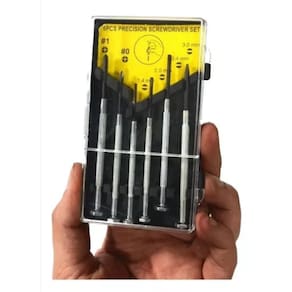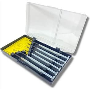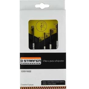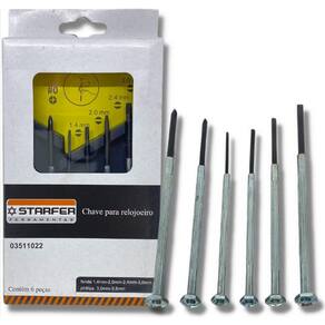 Este jogo de chave para relojoeiro é ideal para uso em trabalhos delicados e equipamentos eletrônico.Contém 6 peças de precisão, sendo:1 Fenda 1,4mm1 Fenda 2,0mm1 Fenda 2,4mm1 Fenda 3,0mm1 Phillips 3,0mm1 Phillips 3,5mmPonta de aço temperado, haste de aço cromado e apoio superior giratório, que facilita o trabalho delicado e detalhista.