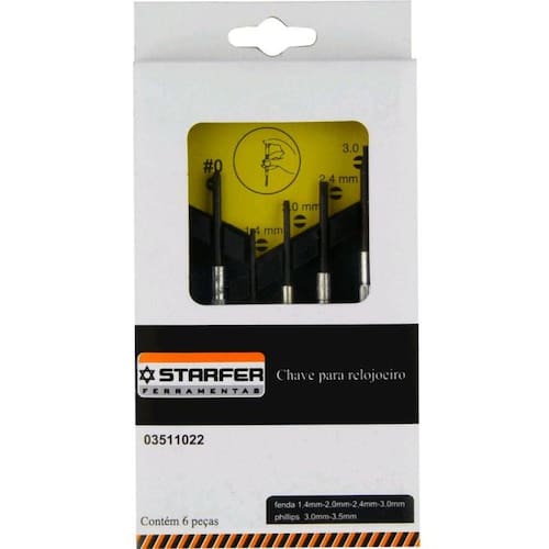 Jogo de chave de precisão para relojoeiro com 6 peças. Indicada para aperto e desaperto de parafusos.Embalagem: caixa de acrílico com tampa transparente.