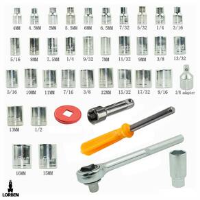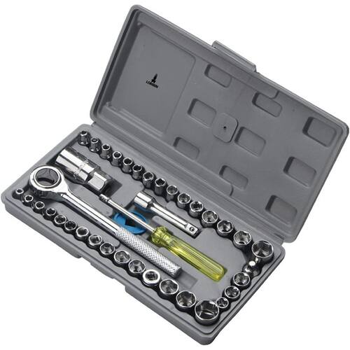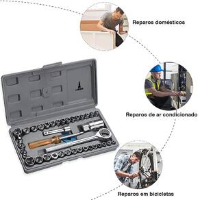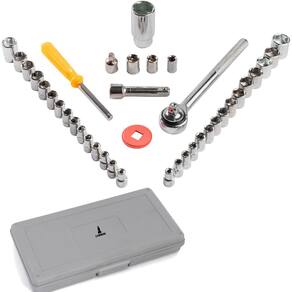 O Jogo de Chaves Soquetes Lorben com Catraca Reversível vem com 39 ferramentas e um prático estojo para armazenamento e transporte.Uma linha completa pensada para facilitar seu dia a dia com chaves que se encaixam em uma ampla variedade de parafusos leves (hobby).As chaves são feitas de aço com revestimento de cromo vanádio, o que as tornam resistentes à corrosão e abrasão, garantindo sua durabilidade.O sistema de liberação rápida dos soquetes e o mecanismo reversível da catraca facilitam a utilização.Este conjunto de chaves tem 2 alças diferentes: uma alça de catraca tradicional e uma alça de chave de porca isolada. A alça de catraca pode ser usada para soltar parafusos enquanto a chave de porca é ótima para trabalhar em pequenas áreas e para trabalhos de precisão.O Kit possui soquetes em milímetros e polegadas. Assim, quer esteja consertando uma máquina de lavar ou montando móveis pré-fabricados, você terá o soquete do tamanho certo para trabalhar.E o estojo compacto em plástico rígido, mantém suas ferramentas organizadas seja na oficina, no escritório ou no porta-malas do carro.Composição do kit:12 Soquetes de 1/4 sextavados: 5/32, 3/16, 7/32, 1/4, 9/32, 5/16, 11/32, 3/8 13/32, 7/16, 15/32 e 1/2"3 Soquetes de 3/8" sextavados: 7/16, 1/2 e 9/16"3 Soquetes de 1/4" octogonais: 1/4", 5/16"e 3/8"13 Soquetes de 1/4" sextavados: 4, 4.5, 5, 5.5, 6, 6.5, 7, 8, 9, 10, 11, 12 e 13 mm3 soquetes de 3/8" sextavados: 11, 12 e 13 mm1 Catraca 3/8"1 cabo de 6"1 Adaptador 3/8"F x 1/4"M1 Disco de giro1 Extensão de 3"1 Maleta PlásticaMarca: LorbenCor: PrateadoMaterial: Aço com revestimento de cromo vanádioInclui:1 Jogo de Chave Soquete com 39 peças (encaixe de 1/4 e 3/8)1 Estojo organizadorDimensões do estojo: 24x12,5x4cmPeso do produto: 1kgTamanho da embalagem: 30x30x5cmPeso da embalagem: 1,100kgCódigo do produto: GT6151Imagens ilustrativas. As tonalidades podem variar.