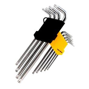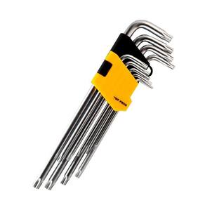 Conjunto completo com 9 chaves de tamanhos variados t10 a t50 Perfeito para profissionais e entusiastas do faça-você-mesmo Ideal para automóveis, bicicletas, eletrônicos e mais Formato em l para maior alavancagem e torque Atende a uma ampla gama de aplicações com eficiência e praticidade