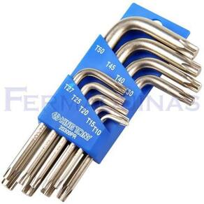A chave torx é uma ferramenta utilizada para aperto e desaperto de parafusos com perfil hexaglobular interno. Ela auxilia na transferência de torque aos parafusos, facilitando a inserção e remoção dos mesmos. A chave torx da marca king tony é fabricada com materiais de alta qualidade e possui acabamento especial. Possui bocas com bitolas diferentes, produzidas de acordo com a norma ansi/ asne b107.6. Contém 9 peças: T10 - t15 - t20 - t25 - t27 - t30 - t40 - t45 - t50. Especificações técnicas: Modelo: extra longa; Fabricada em aço sncm-v; Acabamento cromado e polido. Inclui: Suporte plástico para armazenamento e transporte. Dimensões da embalagem cxlxa mm :110x30x34 Peso: 0,450 kg Ref: 20319pr : 90 dias Fabricante: king tony -imagens meramente ilustrativas -todas as informações divulgadas são de responsabilidade do fabricante/ fornecedor. Ean: 4710591957534