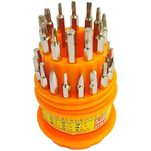 Jogo De Chaves 31 Em 1 Precisão Pontas De Chaves Diversas Multiuso Oculos Controle Video Game Celular Jogo de chave 31 em 1 portátil que é ideal para pequenos reparos. São 31 tipos diferentes de chaves removíveis feitas com aço inox para serem duráveis, o cabo é emborrachado para evitar choques em itens eletrônicos e acompanha um estojo para manter tudo organizado