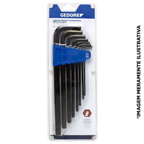 Fabricado em Aço Gedore - Vanadium, sempre utilize a chave L hexagonal (allen) com o perfil de encaixe e a bitola correspondente a bitola do parafuso, para que não haja folga e não danifique a chave e o fixador. Respeite limite de torque estabelecido em norma para cada bitola da chave L hexagonal (allen) longa.