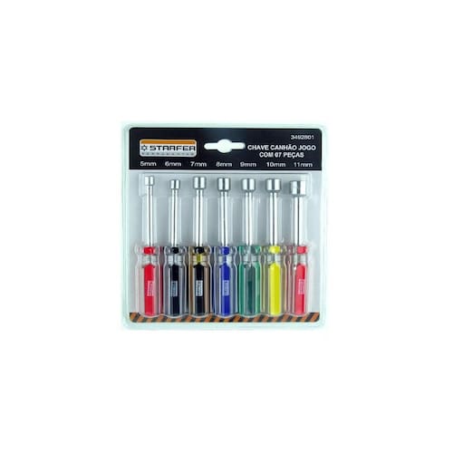 Comprimento total da peça: 145mm 100mm de lâmina x 75mm de cabo . Material: aço Modelo: jogo de soquete sextavado Marca: starfer Cor: metal Ean: 7891638055004
