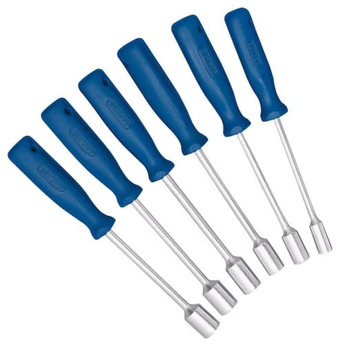 Jogo de Chaves Canhão confeccionadas com haste em aço cromo vanádio e empunhadura em polímero na cor azul. Haste com acabamento niquelado e cromado. Chave com geometria perfil hexalobular interna e cabo ergonômico. Indicada para eletro-eletrônica e mecânica leve, principalmente em locais de difícil acesso.