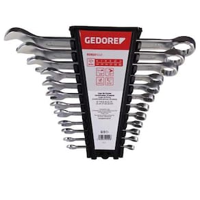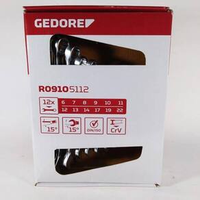 Este Kit da GEDORE Red contém 12 chaves combinada com medidas iguais em ambos os lados. As chaves são feitas de aço cromo vanádio e cromado mate. O lado do anel é inclinado em 15 °, a posição da garra é de 15 °.