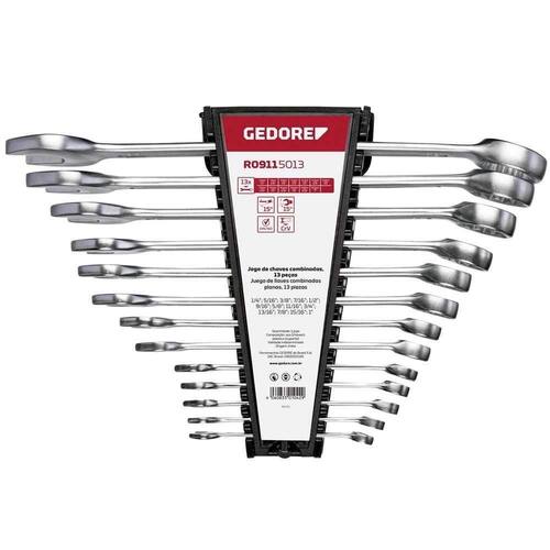 Conteúdo da embalagem: 1 Jogo de chaves combinadas, composto por um suporte plástico com 13 peças, sendo: 1/4, 5/16, 3/8, 7/16, 1/2, 9/16, 5/8, 11/16, 3/4, 13/16, 7/8, 15/16e 1.