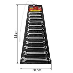 Modo de uso: Use óculos, luvas e outros equipamentos de proteção de acordo com a tarefa a ser executada. Não golpeie as chaves, a não ser que sejam projetadas para este fim. Sempre utilize uma chave de bitola correta para cada parafuso ou porca para que não haja folga, pois isso danifica a chave e o parafuso. Mantenha a chave limpa para um melhor agarre, pois usá-la suja com graxa ou óleo pode causar acidentes. Não use tubos ou extensões para obter mais torque. Não altere a forma das chaves. Armazene em limpo e seco.