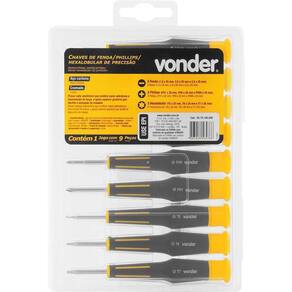 Jogo de chaves de fenda/phillips/hexalobular de precisão com 9 peças VONDER