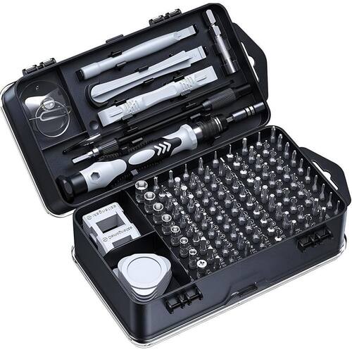 Jogo de Chaves de Precisão 115 Peças Reparos de Eletrônicos Cor: Cinza Otimize seus consertos com o Kit de Ferramentas de 115 Peças, ideal para profissionais e entusiastas de bricolagem. Equipado com 100 pontas intercambiáveis, incluindo Phillips, Flat, Torx, Pentalobe, Hex e muito mais, este conjunto oferece a solução perfeita para desmontagem e manutenção de eletrônicos, como smartphones, laptops, consoles de jogos e outros dispositivos delicados.