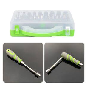 36 pontas de precisão para todos os tipos de parafusos: fenda, Phillips, Torx, estrela, triângulo e agulha.