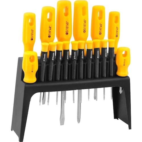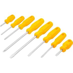 Material do cabo: Polipropileno | Material do jogo de chave fenda e phillips: Aço cromo vanádio | Acabamento do jogo de chave de fenda e phillips: Niquelado | Cor do cabo da chave: Amarelo | Massa aproximada (peso) (kg): 1 kg
