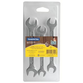Apertar e afrouxar é uma tarefa simples, desde que, você possua a ferramenta correta. Por isso, o Jogo de Chaves Fixas Tramontina 3 Peças é uma ótima opção. São 3 peças para 6 tamanhos diferentes de porcas quadradas ou sextavadas. Aproveite e adicione mais essa solução em sua caixa de ferramentas. Orientações Corpo forjado em aço especial e temperado.Acabamento cromado.Abertura das bocas calibradas.O teste de dureza é realizado em vários pontos para assegurar a resistência ao desgaste da chave durante o uso ininterrupto. As aberturas das bocas das chaves de aperto são verificadas com gabaritos calibrados, o que garante seu perfeito acoplamento nos parafusos.Alguns tipos de chaves de aperto são fornecidos em bitolas métricas e em polegadas, para o uso nos diversos fixadores disponíveis.As ferramentas são produzidas e testadas conforme normas específicas. Características Gerais EAN13 7891114067255 DUN14 17891114067252 NCM 8204.11.00 Peso Líquido 0,1600 kg. Peso Bruto 0,1600 kg. Metragem 0,000347 m³. Dimensões Embalagem (Compr. X Larg. X Alt.) 210x 110x 15 mm. Observações Use óculos, luvas e outros equipamentos de proteção de acordo com a tarefa a ser executada. Não golpeie as chaves, a não ser que sejam projetadas para este fim. Sempre utilize uma chave de bitola correta para cada parafuso ou porca para que não haja folga, pois isso danifica a chave e o parafuso. Mantenha a chave limpa para um melhor agarre, pois usá-la suja com graxa ou óleo pode causar acidentes. Não use tubos ou extensões para obter mais torque. Não altere a forma original das chaves. Armazene em local limpo e seco.