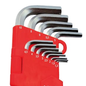Chave hexagonal 1,3 mm. Chave hexagonal 4,5 mm. Chave hexagonal 1,5 mm. Chave hexagonal 5 mm. Chave hexagonal 2 mm. Chave hexagonal 5,5 mm. Chave hexagonal 2,5 mm. Chave hexagonal 6 mm. Chave hexagonal 3 mm. Chave hexagonal 8 mm. Chave hexagonal 3,5 mm. Chave hexagonal 10 mm. Chave hexagonal 4 mm.