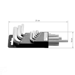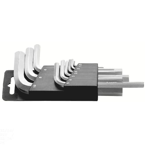 O Jogo de Chaves Hexagonais Tramontina em Aço Especial 9 Peças torna as tarefas mais práticas e funcionais. São 9 chaves hexagonais que são perfeitas para apertar ou afrouxar parafusos com perfil sextavado interno. Elas vem do tamanho 1.5 mm a 10 mm. Possuem haste em aço especial e acabamento cromado, o que também faz delas ferramentas elegantes para ter sempre por perto. Orientações Haste em aço especial.Acabamento cromado.As chaves tipo L são submetidas a ensaios de torque e de dureza para analisar a resistência mecânica e atender aos valores da norma específica. As chaves tipo L possuem dois braços de comprimentos diferentes, e ambas extremidades podem ser utilizadas dependendo do local onde será realizado o trabalho. Ao utilizar o braço mais longo tem-se mais torque, enquanto o braço mais curto promove uma operação mais rápida. Apertar ou afrouxar parafusos com sextavado interno. As ferramentas são produzidas e testadas conforme normas específicas. Características Gerais EAN13 7891114118537 DUN14 17891114118534 NCM 8205.40.00 Peso Líquido 0,2500 kg. Peso Bruto 0,2700 kg. Metragem 0,000630 m³. Dimensões Embalagem (Compr. X Larg. X Alt.) 210x 100x 30 mm. Dimensões Produto (Compr. X Larg. X Alt.) 210x 100x 30 mm. Observações Use óculos, luvas e outros equipamentos de proteção de acordo com a tarefa a ser executada. Utilize o tamanho certo da chave para cada bitola de parafuso. Não faça aproximações de dimensionais, polegadas para milímetros, por exemplo. Não use tubos ou extensões para obter mais torque. Não golpeie as chaves. - Armazene em local limpo e seco.