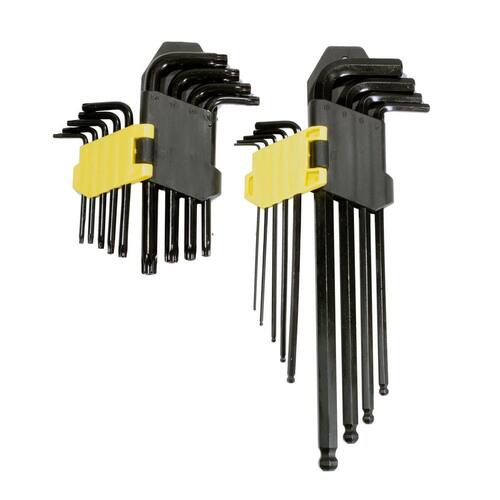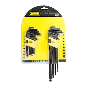 Jogo de chaves hexagonal ponta bola, allen, torque, torx para uso doméstico e profissional em oficinas mecânicas e industrias em geral. Produzido em material cromo vanádio super resistente na cor preto. kit formado por 2 jogos num total de 18 peças acomodadas em um estojo organizador de plástico que acompanha o produto. Tamanhos das chaves torque/torx, t-9, t-10, t-15, t-20, t-25, t-27, t-30, t-40. Tamanhos das chaves hexagonal/allen ponta bola, 1,5mm, 2,0mm, 2,5mm, 3,0mm, 4,0mm, 5,0mm, 6,0mm, 8,0mm e 10,0mm. Estas ferramentas são de haste curta e longa e servem para afrouxar e apertar parafusos específicos cada qual com sua bitola ou medida correta. Possui garantia contra defeitos de fabricação por até 7 dias após o recebimento do produto. Fertak Tools vem conquistando o mercado de ferramentas a cada dia pela sua qualidade e preço atrativo.