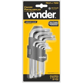 Conteúdo da embalagem: 1 jogo de chaves pentalobular, composto por suporte plástico com 9 peças, sendo: ts10, ts15, ts20, ts25, ts27, ts30, ts40, ts45 e ts50. Produzido em aço cromo vanádio, proporcionando maior resistência e durabilidade. Possui ainda furo guia, que confere encaixe perfeito em parafusos com pino guia, podendo ser também nos demais parafusos. Indicado para fixar e soltar parafusos pentalobulares. legal: 90 dias material: aço cromo vanádio acabamento: cromado massa aproximada peso : 0,271 kg Marca: Não Informado