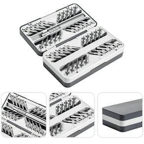 60 pontas de precisão: Parafusos de todos os tipos e tamanhos, incluindo fenda, Phillips, Torx, estrela, triângulo e agulha. Cabo ergonômico: Para maior conforto e controle durante o uso. Estojo compacto e organizado: Para manter todas as suas chaves em um só lugar. Feito de aço de alta qualidade: Durável e resistente, pronto para lidar com os reparos mais desafiadores.