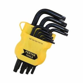 O jogo de ;chaves ;Torque da Fertak é um item indispensável na sua caixa de ferramentas. Super prático e resistente ele é composto por 9 peças de diferentes tamanhos e conta com corpo em aço cromo vanádio de alta qualidade, ;chaves ;com formato em L com duas pontas funcionais, ótimo acabamento com pintura contra corrosão, e o melhor, possui suporte com trava para acondicionamento das chaves, diminuindo as chances de perdê-las e facilitando a organização.