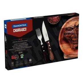 Jogo De Churrasco Inox Jumbo Tramontina Polywood Castanho 12 Peças Talheres de qualidade deixam sua mesa muito mais convidativa. Um exemplo é a linha Polywood que, com seus cabos de madeira tratada, faz bonito em encontros mais informais. Recomendações de Uso: - Tenha cuidado ao manusear produtos cortantes e perfurantes e mantenha-os fora do alcance de crianças.- Para garantir a durabilidade dos produtos, recomenda-se secá-los bem após a lavagem, mesmo sendo em máquina de lavar louças.- Foto meramente ilustrativa. Informações Adicionais: