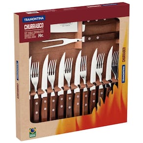 Kit Churrasco 14 Peças em Aço Inox com Cabo de Madeira Natural - Tramontina - Código: 22299011