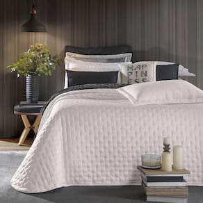 Jogo de Cobre Leito Ultraessence Toque de Algodão ANTILOPE TAMANHO: KING Descrição: Pespontos inspirados no clássico capitonê acentuam o maxi volume e evidenciam o conforto inegável do cobre leito confeccionado em tecido suave com toque de algodão em 250 fios. A moderna técnica Ultraessence une o tecido através de processo térmico que não perfura o tecido e preserva sua delicadeza. Com uma cartela de cores neutras traduz elegância para compor quartos que esbanjam beleza e conforto.