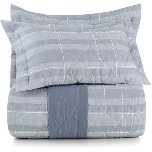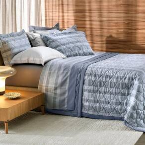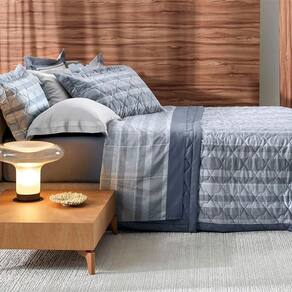 Jogo de Colcha Altenburg Pauta 300 Fios 3 Peças Queen Azul