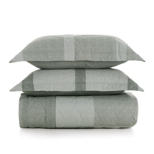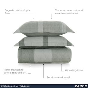 O jogo de colcha Adam combina leveza e personalidade na medida certa. A estampa geométrica texturizada em tons de verde acinzentado cobre a colcha com equilíbrio e suavidade, criando uma atmosfera contemporânea e acolhedora. A peça é dupla face e traz padronagens coordenadas para variações sutis. Os dois porta-travesseiros matelassados acompanham no estilo, completando a composição com harmonia. Confeccionado em algodão 160 fios com tratamento termobond, oferece toque extra macio e durabilidade.