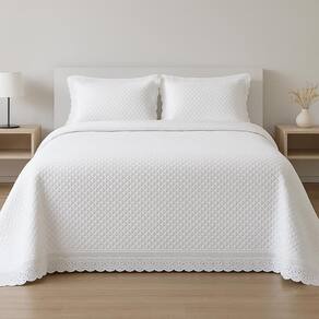 Jogo De Colcha Com Renda Paradis Queen 240X260Cm - Branca