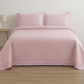 Jogo De Colcha Com Renda Paradis Queen 240X260Cm - Rosa