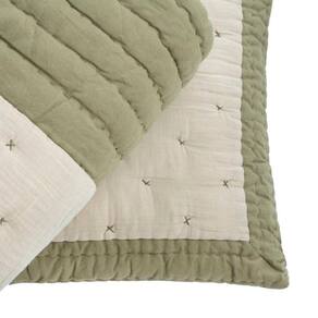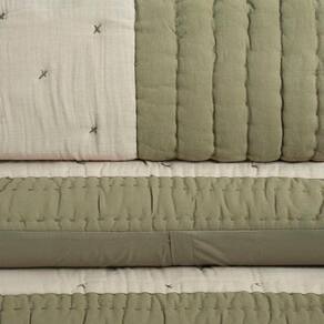 Transforme o seu quarto com o toque de elegância e exclusividade do nosso Jogo de Colcha Consuelo confeccionado em algodão! Ele traz pespontos feitos à mão em um delicado formato de cruz, garantindo charme e sofisticação. O barrado verde dá o contraste perfeito com o tom natural da parte interna, criando um visual singular e acolhedor. Ideal para quem valoriza um design único!