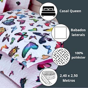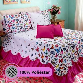 Jogo de Colcha Queen Belize 6 Peças Matelassado com Babado Variação: Borboletas Pink Olá Se você procura transformar seu quarto em um ambiente elegante e acolhedor sem abrir mão da praticidade, você está no lugar certo Apresentamos o Kit 6 Peças Cobre Leito Colcha Casal Queen Belize com Babados - a escolha ideal para quem deseja um quarto sofisticado e aconchegante todos os dias. Muitas pessoas sentem dificuldade em encontrar um conjunto de cama completo, bonito e fácil de cuidar. Esse kit resolve tudo isso em uma única compra, oferecendo design diferenciado e qualidade garantida. Benefícios comprovados pelos clientes O quarto ficou muito mais bonito e organizado. Adorei o acabamento - Luciana M. Produto resistente e confortável. Lavagem prática no dia a dia. - Renata S. Conjunto completo, não precisei comprar capas separadas. Excelente custo-benefício - Juliano T. Especificações técnicas: 01 Cobre-leito 2,40 m x 2,50 m 02 Porta-travesseiros 0,50 m x 0,70 m 02 Capas de Almofada 0,40 m x 0,40 m Tecido superior: Microfibra estampada 100% poliéster Manta: 100% poliéster Inferior: 100% polipropileno Tecido matelassado com babados elegantes Indicado para cama Casal Queen Enchimentos de travesseiros e almofadas não acompanham o produto Sua compra tem de 3 meses contra defeitos de fabricação, proporcionando segurança e confiança. O Kit 6 Peças Cobre Leito Queen Belize é um conjunto completo, confortável e durável. limitado - garanta já o seu e transforme seu quarto hoje mesmo Agradecemos sua visita à Atual Ecommerce. Conte conosco para produtos de qualidade e entrega rápida