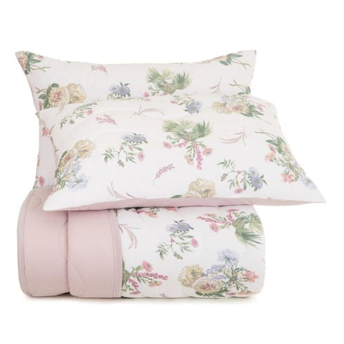 Transmitindo a calma e tranquilidade da cor rosa e trazendo para o quarto a decoração ideal para quem adora estampas florais, o Jogo de Colcha Botanic Land tem em sua estampa arranjos de flores super delicadas e apaixonantes. É perfeito para compor a decoração do quarto e é também extremamente confortável. Confeccionado 100% em algodão, este jogo de cama traz o conforto ideal para uma ótima noite de sono garantindo o seu bem-estar!