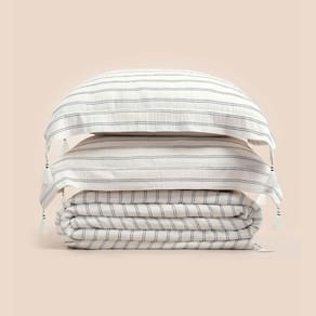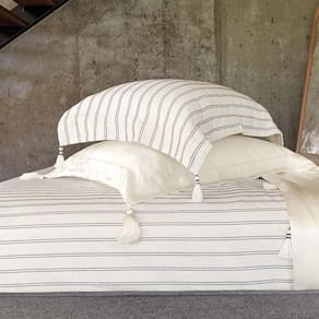 Fibra natural, o algodão é durável, macio e respirável. O tecido absorve o calor do corpo, agindo como um termostato natural, mantendo frescor no verão e proteção ao frio no inverno e as fronhas não irritam a pele mais sensível do rosto. O tecido pré-lavado tem estrutura de gaze em dupla camada que o deixa ainda mais respirável. O aspecto naturalmente enrugado do tecido com detalhes em fio tinto adicionam um estilo delicadamente descontraído e autêntico.