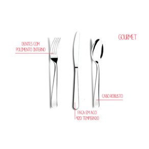 Com peças robustas e imponentes, a linha de talheres Gourmet traz sofisticação à mesa. A colher de chá é ideal para usar com xícaras ou canecas para adoçar e misturar sua bebida favorita. A estrutura e o cabo em aço inox superpolido tornam a peça altamente durável e resistente, não correndo risco de oxidar e podendo inclusive ir à máquina de lavar louça. De fabricação 100% nacional, os produtos da linha Gourmet aliam qualidade, beleza e preço justo. Este conjunto contém 12 peças.
