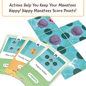 Buffalo Games - I Heart Manatees - Jogo de construção de habitat de peixe-boi - Construção de deck e estratégia - Jogo Eric Lang - A partir de 10 anos - Construa seu habitat: mova manitees, adicione manitees ou tire cartões de foto para gerar seu habitat - Ataque de tubarão: tente sabotar seus oponentes com a ação de ataque de tubarão - Estratégico e fofo: saia por cima com o grande habitat do peixe-boi