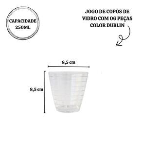 JOGO DE COPO DE VIDRO COM 06 PEÇAS COLOR DUBLIN 250ML -VDA03013.