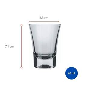 - Ideal para: Cachaça, Destilados, licores, finger food; - Capacidade 60ml; - Vidro de excelente qualidade, mais brilhante e transparente;