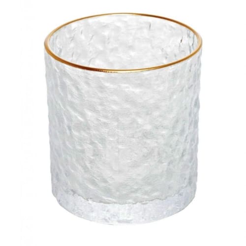 Aprecie cada gole do seu whisky favorito com estilo com o novo Copo de Whisky de Cristal Martelado com Borda Dourada Petra da Lyor!
